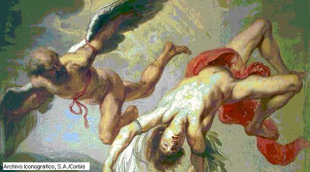 Keskidi ??? Rien .. il dit ... vague, il se la pète avec sa chute, il croit qu'elle va devenir plus célèbre que celle d'Icare, fieu. Icare ? C'est qui Icare ? Icare ? un type qui a volé tellement haut qu'il s'est brûlé les ailes ! Les ailes ? c'était un ange alors ? Oueille, c'est ça : un hell's angel, alleille !